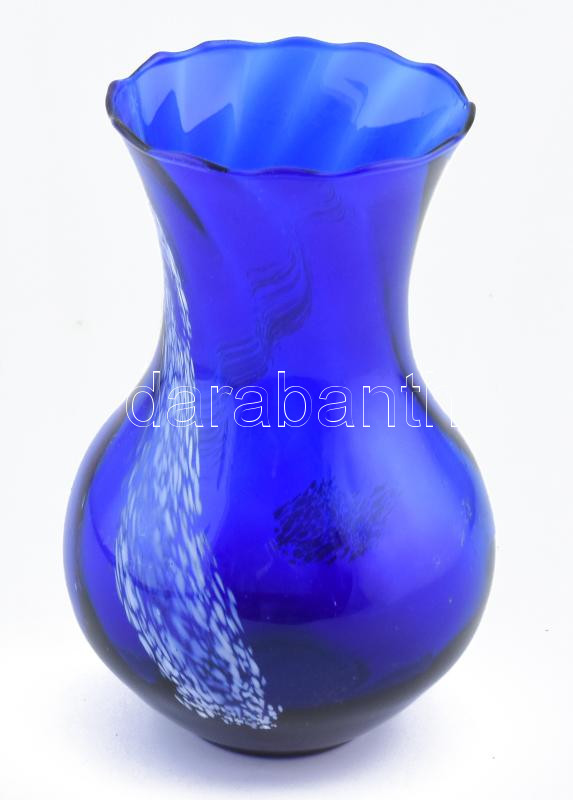 Murano királykék üvegváza, jelzés nélkül, hibátlan, m: 22 cm