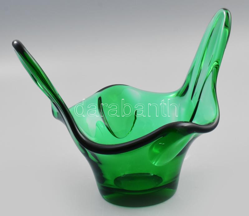 Murano zöld üveg kínáló, anyagában színezett, jelzés nélkül, kopással, m: 20 cm