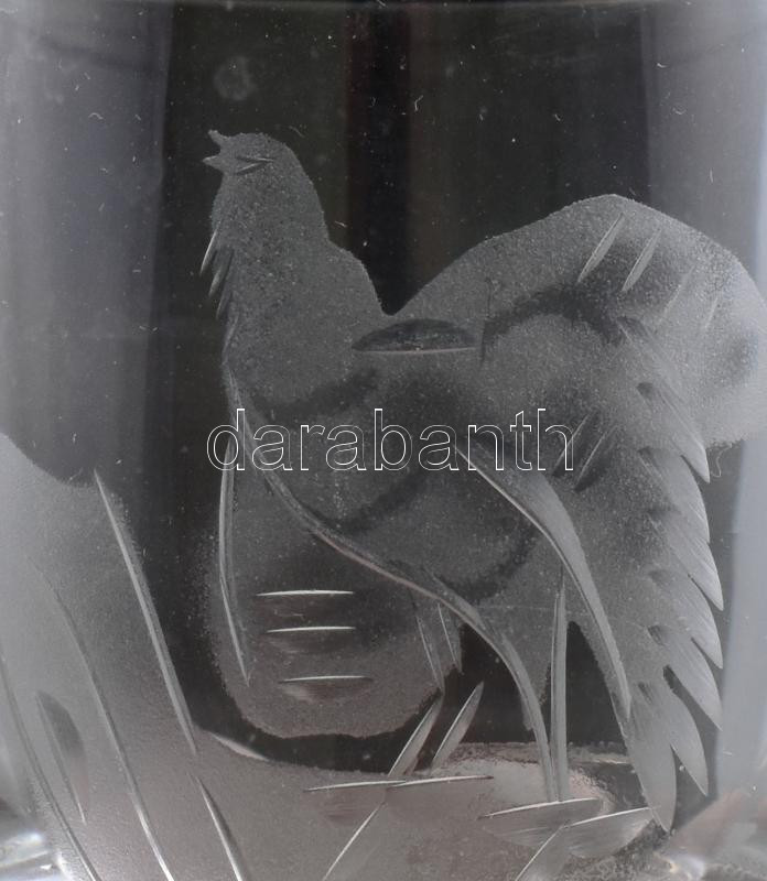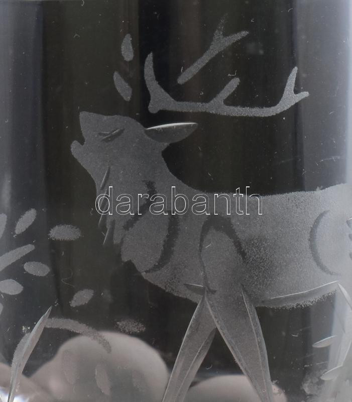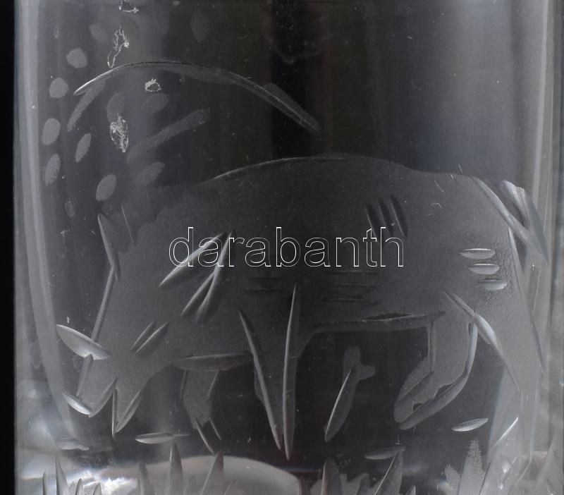 Stölzle Oberglas Masters collection vadászpohár szett, 6 db, klf csiszolt állatmintákkal, kopással, m: 6 cm