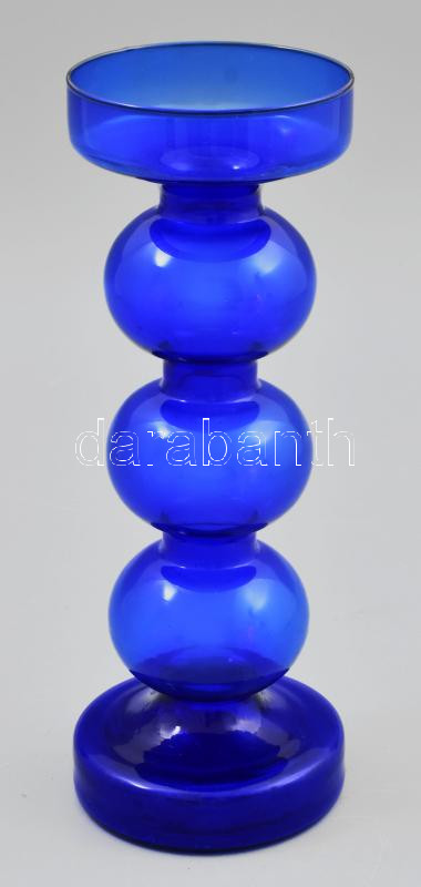cca 1960 Alfred Taube kék üvegváza, jelzés nélkül, hibátlan, m: 21 cm