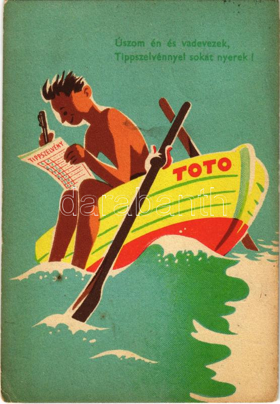 1953 Úszom én és vadevezek, tippszelvénnyel sokat nyerek! Totó reklám ...