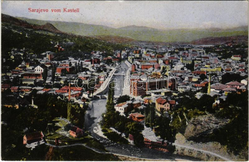 1911 Sarajevo, vom Kastell / general view from the castle + "K.U.K. MILIT. POST SARAJEVO"