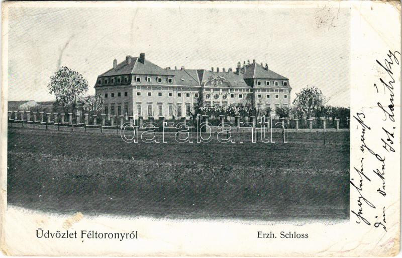 1901 Féltorony, Halbturn; Erzh. Schloss / Kastély / castle (gyűrődések / creases)
