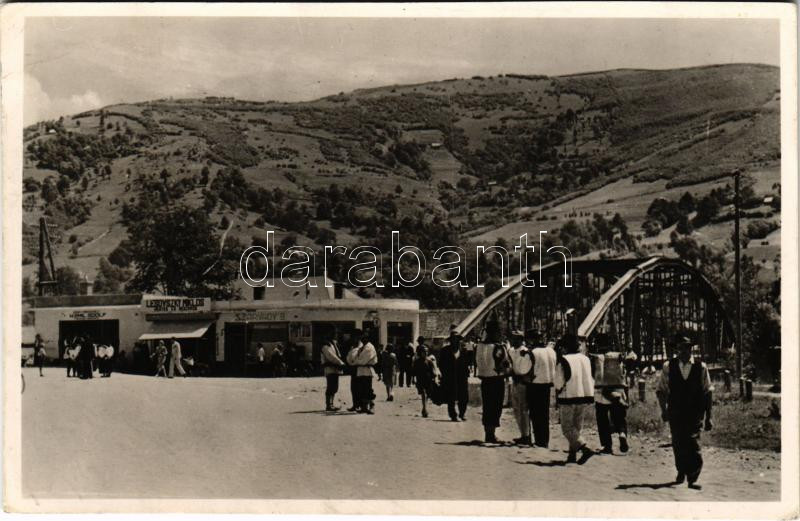 1940 Rahó, Rachov, Rahiv, Rakhiv; Fő utca, Tisza híd, Szarvady B., Lesovszky Miklós, Kamil Adolf üzlete / main street, Tisa bridge, shops (EK)