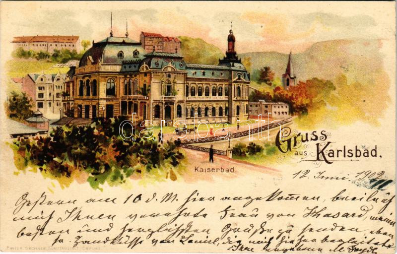 1902 Karlovy Vary, Karlsbad; Kaiserbad / spa. Friedr. Kirchner Art Nouveau, litho