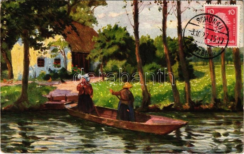 1927 Spreewälder Bauernhaus / German folklore art postcard, peasant house, rowing boat. K.E.B. No. 96. TCV card (EK)