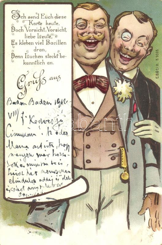 Two laughing gentlemen, greeting card, E.B. & C.i.B. S. 9035. litho