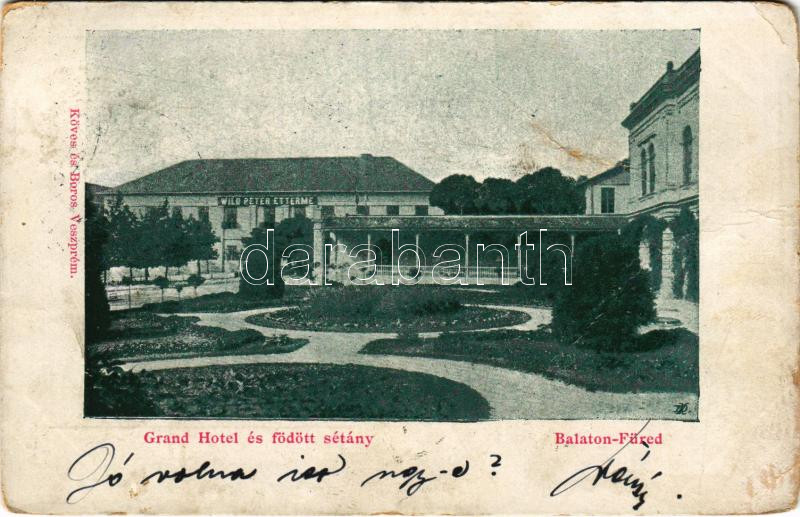 1900 Balatonfüred, Grand Hotel szálloda és fedett sétány, Wild Péter étterme. Köves és Boros kiadása (EM)