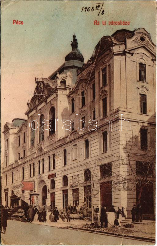https://www.darabanth.com/en/454-Online-auction/454.0/Postcards/Hungary~1000005/1908-Pecs-uj-varoshaza-Paunz-Jakab-es-fia-Vigan-Karoly-es-Vamos-es-Furedi-uzlete-r~II2806837