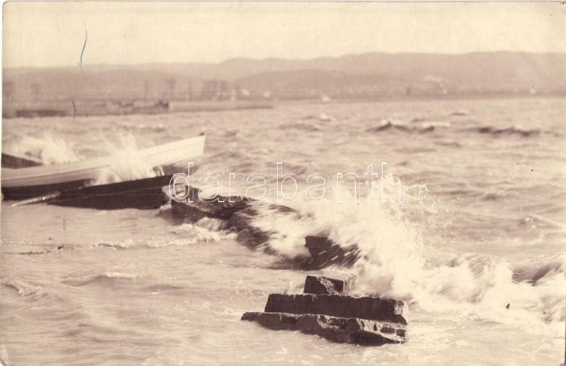 1916 Keszthely, Balatoni hullámok törése a parton. photo (EK)