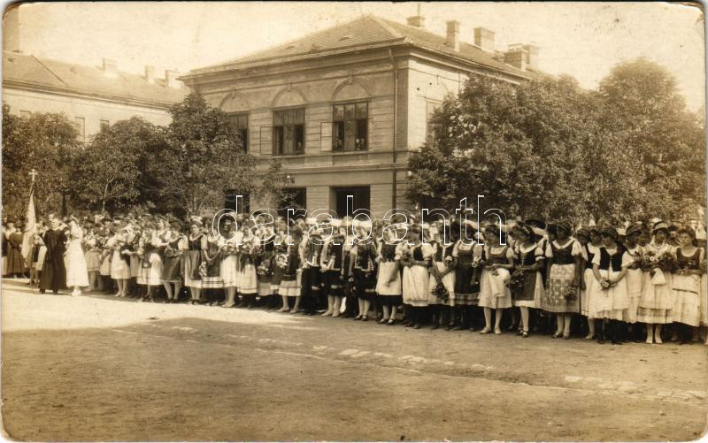 1921 Sopron, ünnepség, Bocskai magyar ruhás lányok középen és más dísz...