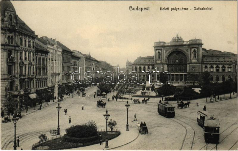Budapest VII. Keleti pályaudvar, vasútállomás, villamosok, Baross szob...