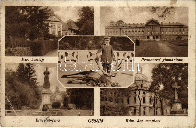 Gödöllő, Királyi kastély, Erzsébet park és szobor (Sissi), Római katolikus templom, Premontrei gimnázium, Horthy Miklós lelőtt szarvassal (EB)