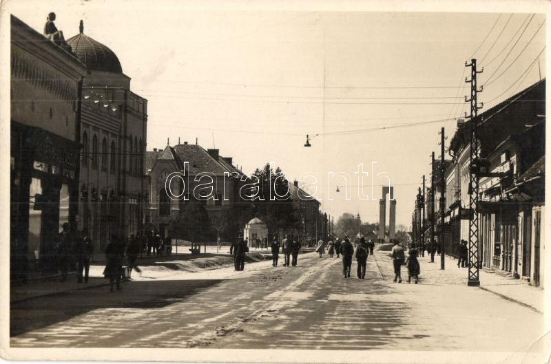 Mohács, Fő utca, Hősök emlékműve, Rosenthal László üzlete (EK)