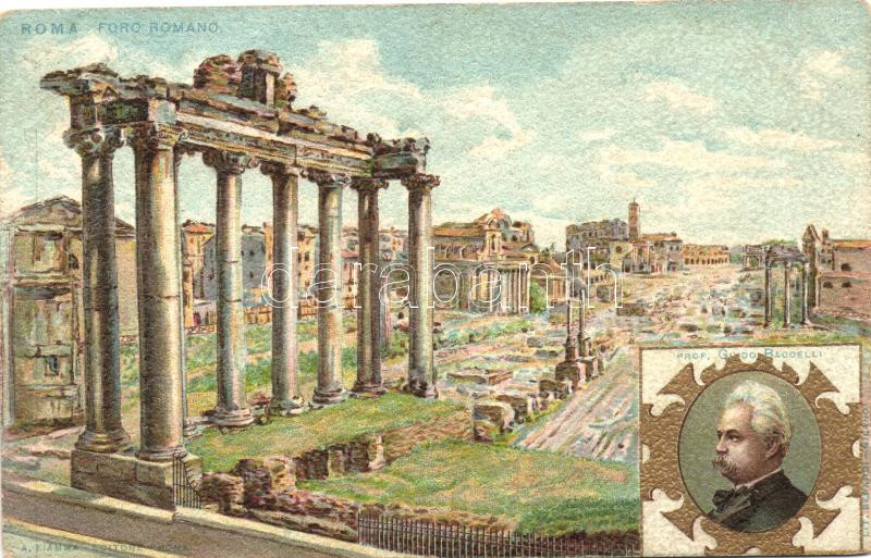 Rome, Roma; Foro Romano, Prof. Guido Bacceli / Roman Forum, litho (EK)