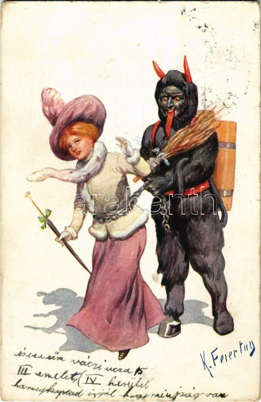 Krampusz és hölgy / Krampus and lady. B.K.W.I. 2902-4. S: K. Feiertag ...