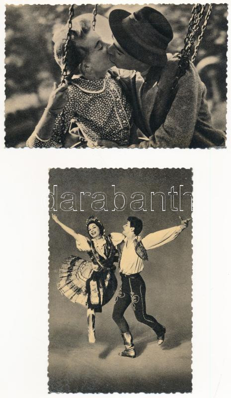 19 db MODERN postatiszta magyar képeslap: színészek, balettáncosok, filmjelenetek 60-as évekből, Soós Imre, Törőcsik, Bessenyei, Ráthonyi, Bárdi, Zentai, Németh Marika, Krencsey, Darvas Iván, stb. / 19 modern unused Hungarian postcards of actors and actresses