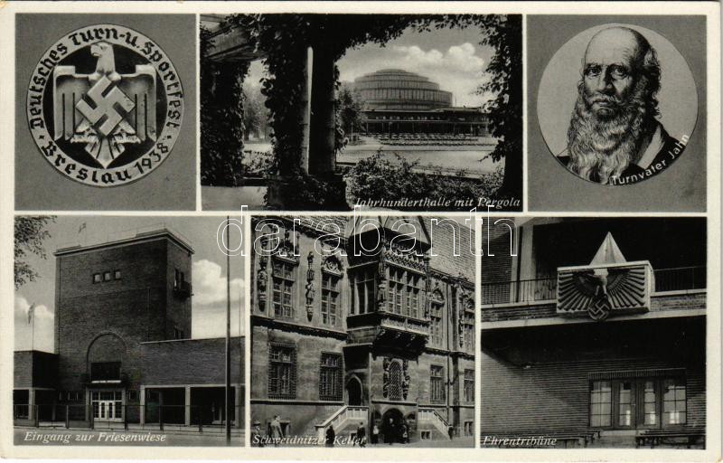 Wroclaw, Breslau; Deutsches Turn- u. Sportfest 1938. Jahrhunderthalle ... https://www.darabanth.com/en/454-Online-auction/454.0/Postcards/Poland~1000048/Wroclaw-Breslau-Deutsches-Turn-u-Sportfest-1938-Jahrhunderthalle-mit-Pergola-Turnvater-Jahn-E~II3002875