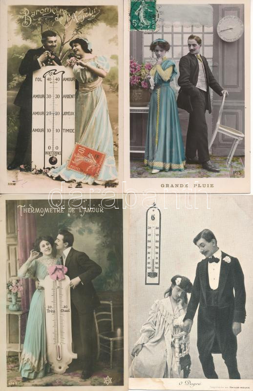20 db régi francia romantikus képeslap: hőmérők / 20 pre-1945 French r...