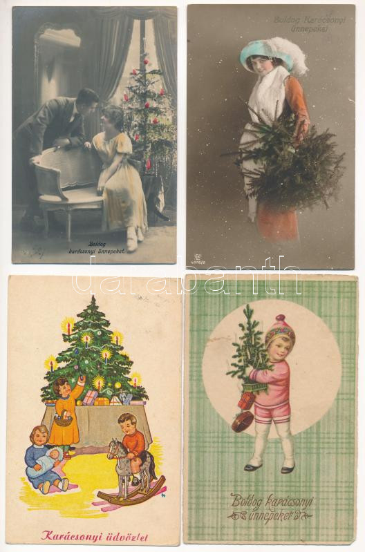 21 db RÉGI karácsonyi üdvözlő képeslap vegyes minőségben / 21 pre-1945 Christmas greeting postcards in mixed quality