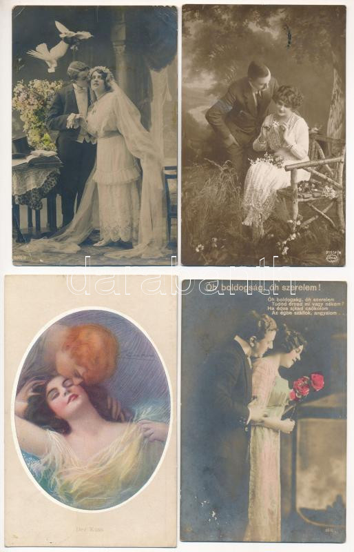21 db RÉGI zsáner képeslap vegyes minőségben: hölgyek, szerelmes párok...