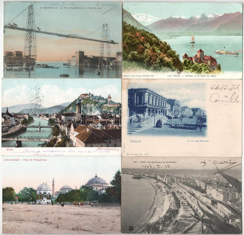33 db főleg hosszú címzéses külföldi városképes lap 1906-ból
