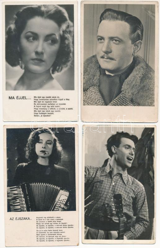 41 db RÉGI magyar színész képeslap (sok Filmbolt) vegyes minőségben: Sárdy, Bulla, Szeleczky, Karády, Jávor, Bilicsi, Déry Sári, Gozmány, László Imre, Halász Géza, Fényes Alíz, Goll Bea, Rácz Vali, Tasnády, Honthy, Tolnay / 41 pre-1945 Hungarian actors and actresses postcards in mixed quality