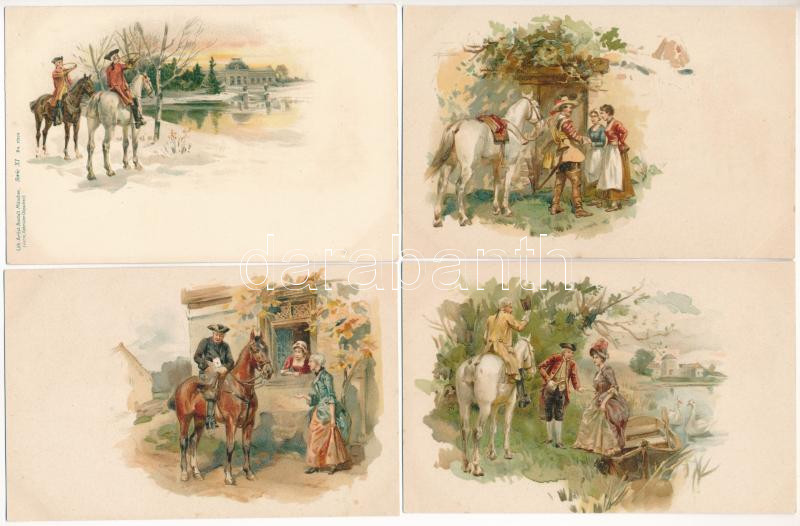 Lovasok, lovak 7 db hosszúcímzéses litho lap