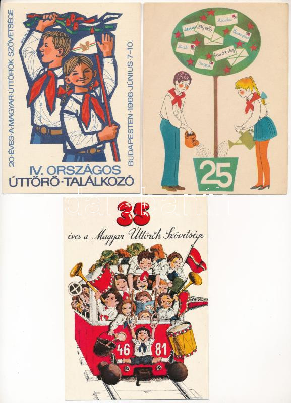 3 db modern magyar propaganda képeslap: 35 és 25 éves a Magyar Úttörők...