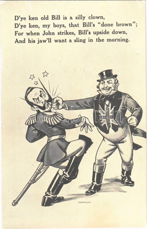 "D'ye ken old Bill is a silly clown" Wilhelm II mocking Anti-German propaganda art postcard, John Bull. "War Cartoons" Series. No. 5014. (EK)
