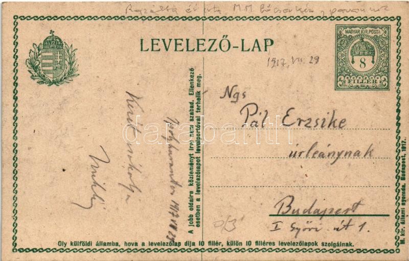 Description: 1917 Az Ipolyharasztosi (Ipolyharaszti) cserkésztábor nyugatról. Márkus Miklós főcserkész parancsnok levele és saját kezű rajza / Hungarian boy scout camp in Chrastince, hand-drawn art postcard. Letter of the artist, 8 Fillér Ga. s: Márkus Miklós