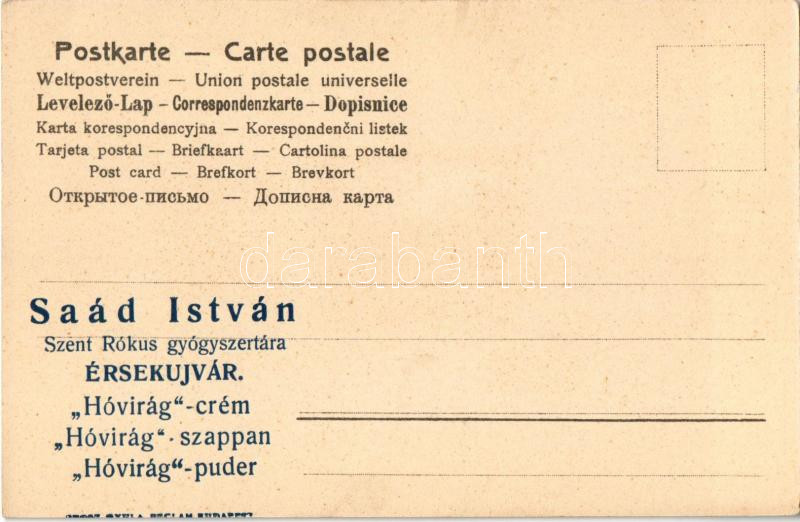 Érsekújvár, Nové Zámky; Saád István Szent Rókus gyógyszertárának reklá... https://www.darabanth.com/en/454-Online-auction/454.0/Postcards/Slovakia~1000007/Ersekujvar-Nove-Zamky-Saad-Istvan-Szent-Rokus-gyogyszertaranak-reklamja-a-kepeslap-hC3~II3023816