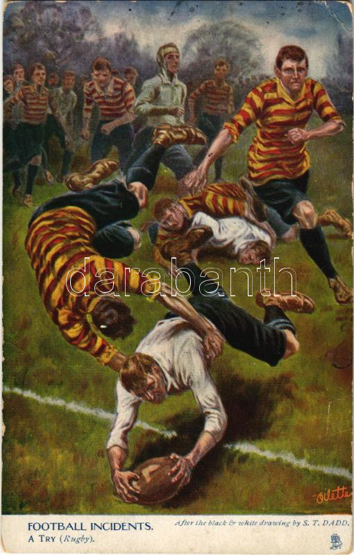 1910 A try (Rugby). Raphael Tuck & Sons "Oilette" "Football Incidents" Postcard 1746. s: S. T. Dadd (EK)