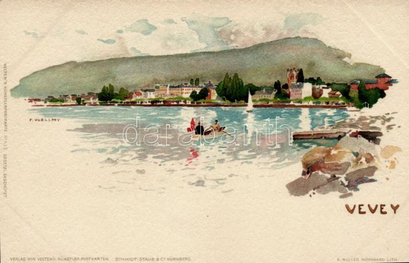 Vevey, port, Velten's Künstlerpostkarte No. 435. litho s: F. Voellmy
