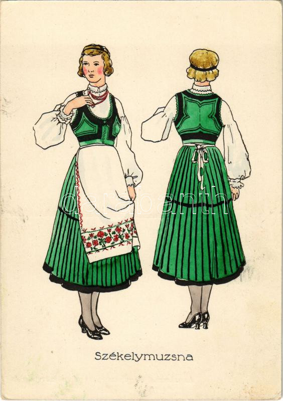 Székelymuzsna, Muzsna, Muja; Erdélyi népviselet. Az udvarhelyi egyházmegyei ref. nőszövetség és az "Ifjú Erdély" kiadása / Transylvanian folklore