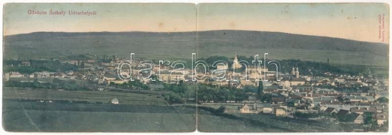 Székelyudvarhely, Odorheiu Secuiesc; Manheim József kiadása - 2-részes kinyitható panorámalap / 2-tiled folding panoramacard (fa)
