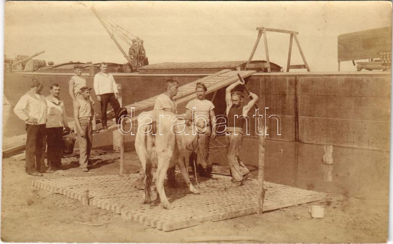 1916 Belene, Osztrák-magyar haditengerészet Dunaflottilla matrózai levágnak egy tehenet / K.u.K. Kriegsmarine Donauflottille Matrosen / Austro-Hungarian Navy Danube Flotilla's mariners slaughtering a cow. photo