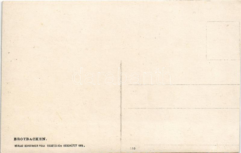 Description: Osztrák-magyar haditengerészet matrózai a konyhában kenyér sütés közben / K.u.K. Kriegsmarine Matrosen, Brotbacken / Austro-Hungarian Navy mariners in the kitchen, bread baking. Schrinner Pola 1915.