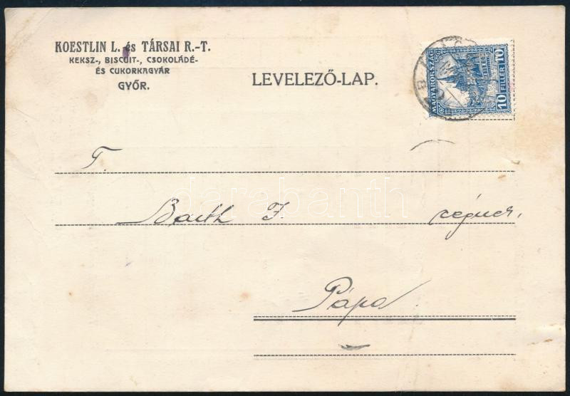 https://www.darabanth.com/en/455-Online-auction/455.0/Art-and-other-collectibles/Advertisement~2000036/1931-Gyor-Koestlin-L-es-Tarsai-Keksz-Biszkvit-es-Csokoladegyar-Levelezolap-10f-bermentesitve~II3040783
