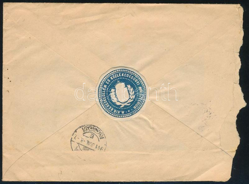 1941 M. Kir. Kereskedelem és Közlekedésügyi Minisztérium levélzáró ablakos borítékon