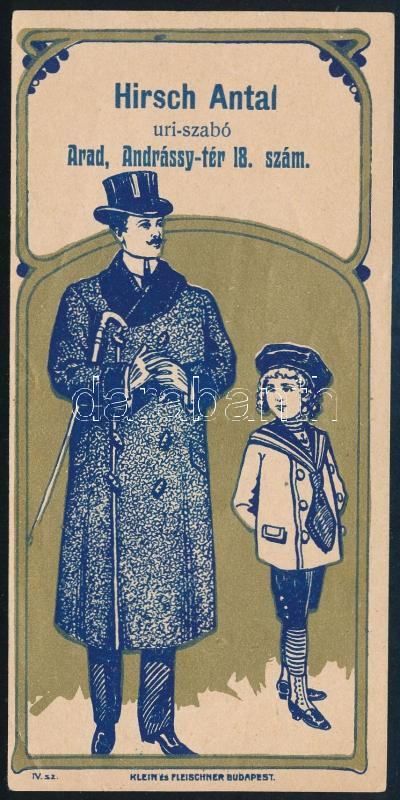 Hirsch Antal úri szabó, Arad Andrássy tér 18., szecessziós számolócédu...
