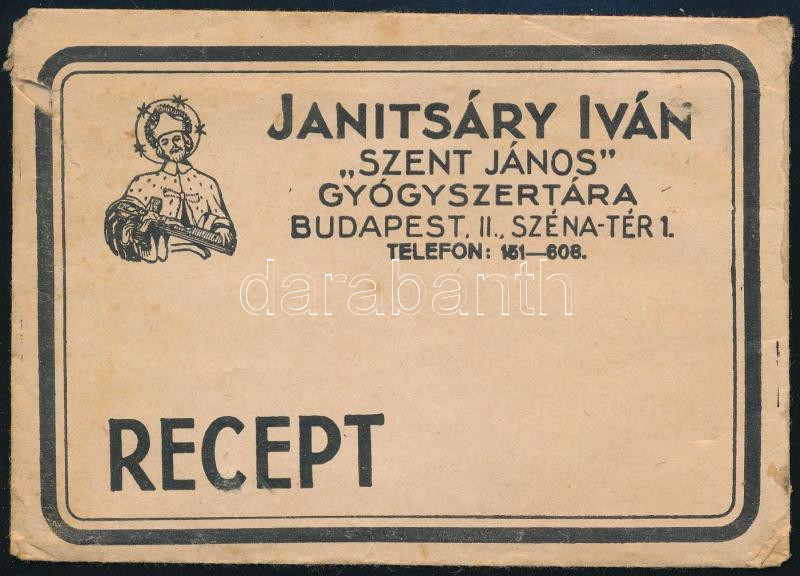 Janitsáry Iván "Szent János" Gyógyszertára Bp. II. Széna tér receptbor...