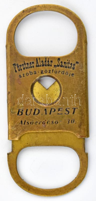 Szivarvágó Förstner Aladár szoba gőzfürdője Budapest Alsó Erdősor u. reklámmal. réz 6 cm