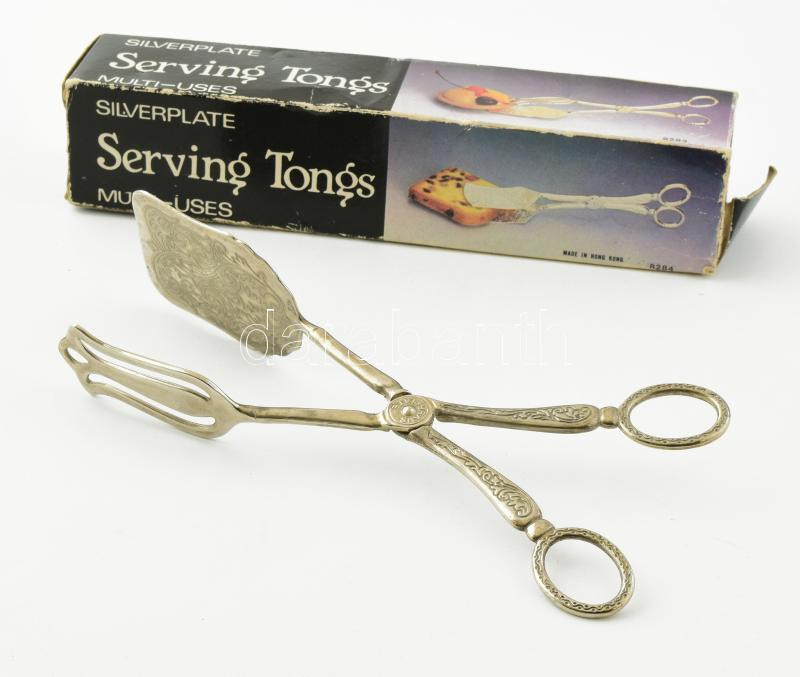 Ezüstözött süteménykanál, dobozában, h: 22 cm