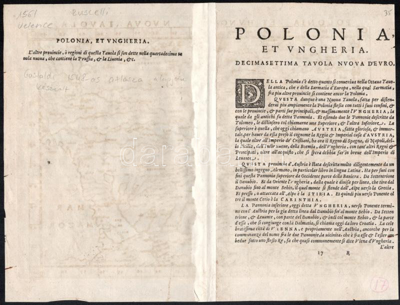 1561 Polonia et Ungheria. Lengyelország és Magyarország térképe. Színe... https://www.darabanth.com/en/455-Online-auction/455.0/Art-and-other-collectibles/Maps~2000009/1561-Polonia-et-Ungheria-Lengyelorszag-es-Magyarorszag-terkepe-Szinezett-rezmetszet-hatoldalan~II3038453
