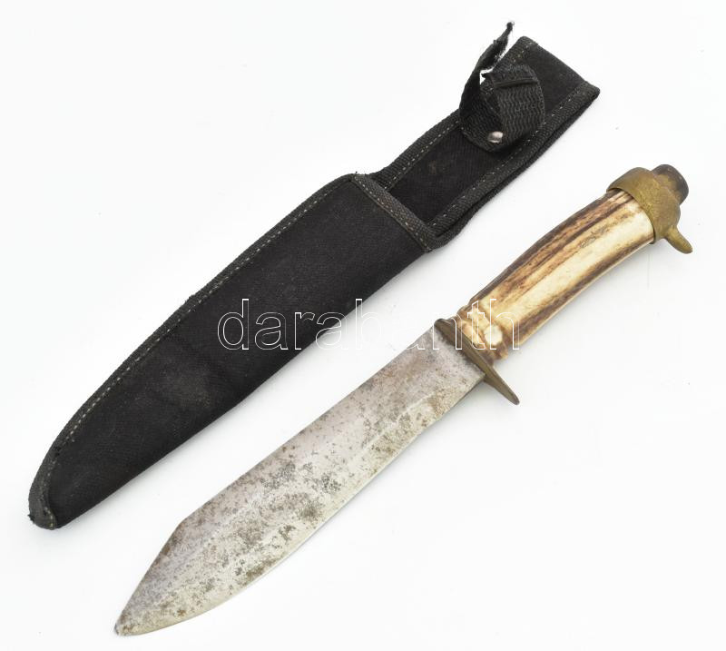 Dísztőr, agancs markolattal, tokjában, h: 29 cm