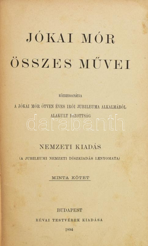 Jókai Mór összes munkái. Nemzeti díszkiadás. Minta kötet Ügynöki minta... https://www.darabanth.com/en/455-Online-auction/455.0/Books/Books-Other-rarities~2000032/Jokai-Mor-osszes-munkai-Nemzeti-diszkiadas-Minta-kotet-Ugynoki-minta-peldany-Budapest-1894~II3032682