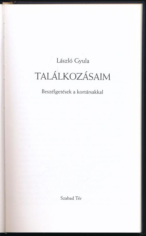 László Gyula: Találkozásaim. Beszélgetések a kortársakkal. H.n., 2003, Szabad Tér. Kiadói kartonált papírkötés.