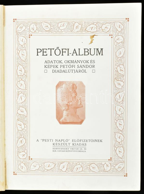 Petőfi-album. Adatok, okmányok és képek Petőfi Sándor diadalútjáról. A... https://www.darabanth.com/en/455-Online-auction/455.0/Books/Books-Other-rarities~2000032/Petofi-album-Adatok-okmanyok-es-kepek-Petofi-Sandor-diadalutjarol-A-Pesti-Naplo-elofizetoinek~II3033452