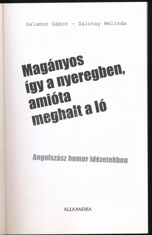 Salamon Gábor - Zalotay Melinda: Magányos így a nyeregben, amióta megh... https://www.darabanth.com/en/455-Online-auction/455.0/Books/Books-Other-rarities~2000032/Salamon-Gabor-Zalotay-Melinda-Maganyos-igy-a-nyeregben-amiota-meghalt-a-lo-Angolszasz-humor~II3016918